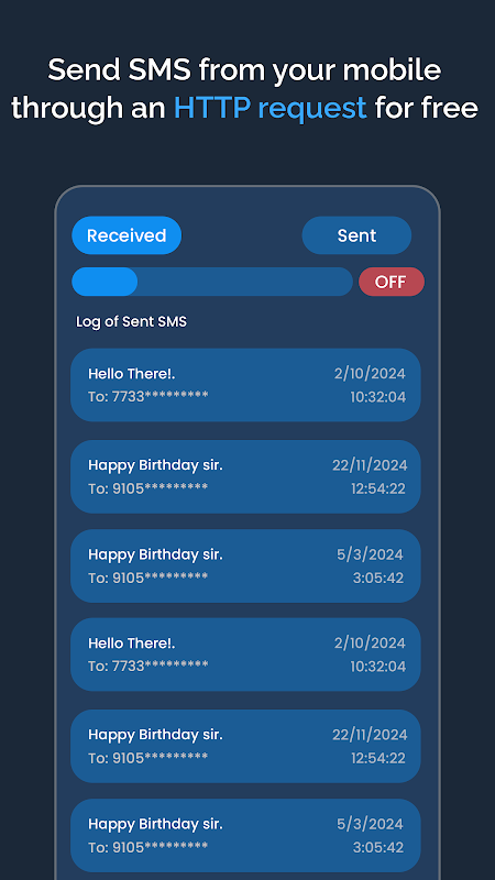 Toma el control de tu comunicación con SMS Mobile API — la solución todo en uno de API SMS que permite a empresas y particulares enviar y recibir SMS directamente desde su propio teléfono Android mediante una API sencilla.