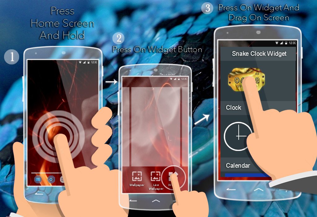 - With your Snake phone personalisation program go several watch skins and Snake Clock Widget that will make your smartphone or tablet a real treat for the eyes. Make your devSnake trendy and stylish with this useful gadget and you'll soon find yourself wondering how you could live without it. In addition to many Snake Clock Widget styles created by our designers, there are also many ways in which you