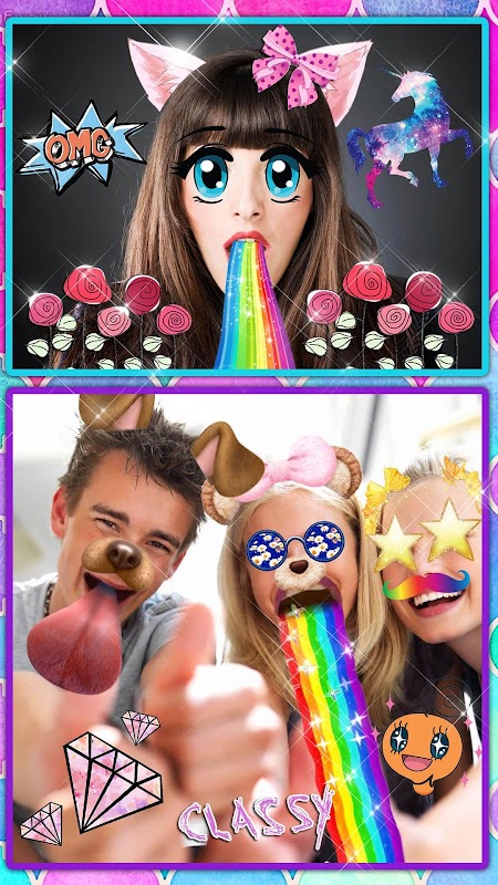 Hay muchos pegatinas aplicaciones que ofrecen. Estos snap foto filtros es el mejor que ofrece único y muy inusual pegatina. Descargar cámara con caras de animales y te sentirás como un fotógrafo profesional que puede hacer muy interesante pegatina imagen y que disfruta de su trabajo. Disfrute de su pegatina!