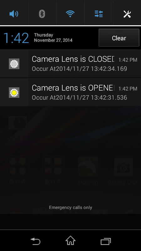 - Registrar el momento en que la cámara móvil se abrió y se cerró. Esta aplicación seguirá para leer información de la cámara móvil. Esta APP nunca toma cualquier foto o vídeo.