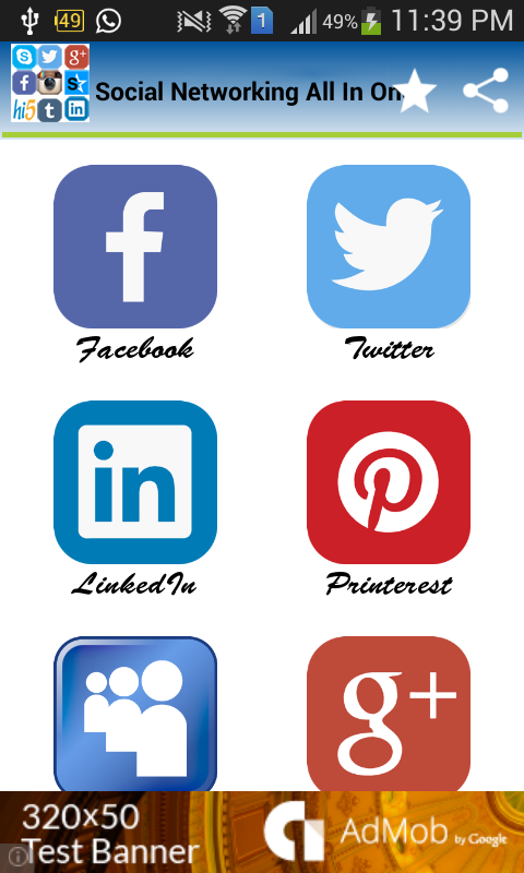 Social Networks All in One is a must have app for all social media users. As its name suggests it contains all popular social networking sites and one can access his/her favorite social media such as Facebook, Twitter, Pinterest, Instagram etc. through this app.