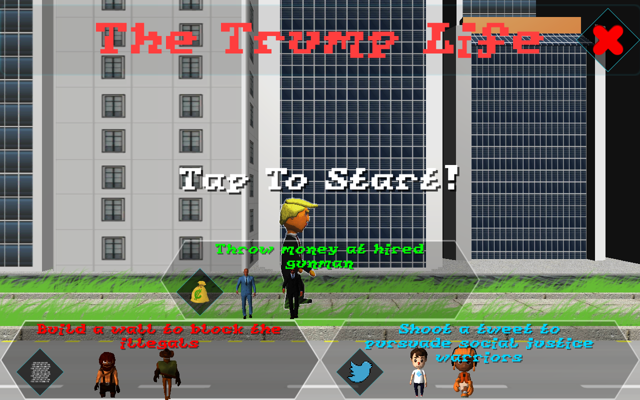 Gain points for every blocked illegal, social justice warrior you trick to your side, and hired gunmen your pay off.