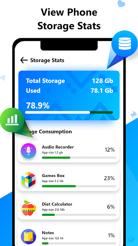 Con la interfaz fácil de usar de este software de actualización para Android, obtendrá las listas de aplicaciones predeterminadas e instaladas. Esta actualización de software 2022 muestra los detalles de cada aplicación.