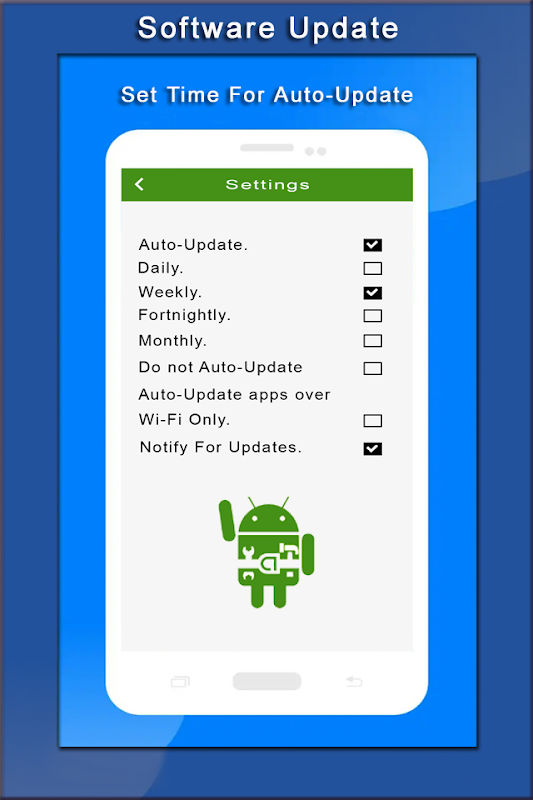 Software Update app display apps in two parts as System Apps and Installed Apps and also check for update and notify you regularly.