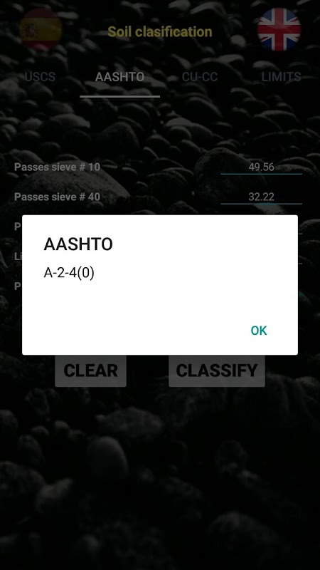 Rápido y fácil, ingrese la información y obtenga la clasificación SUCS y AASHTO.