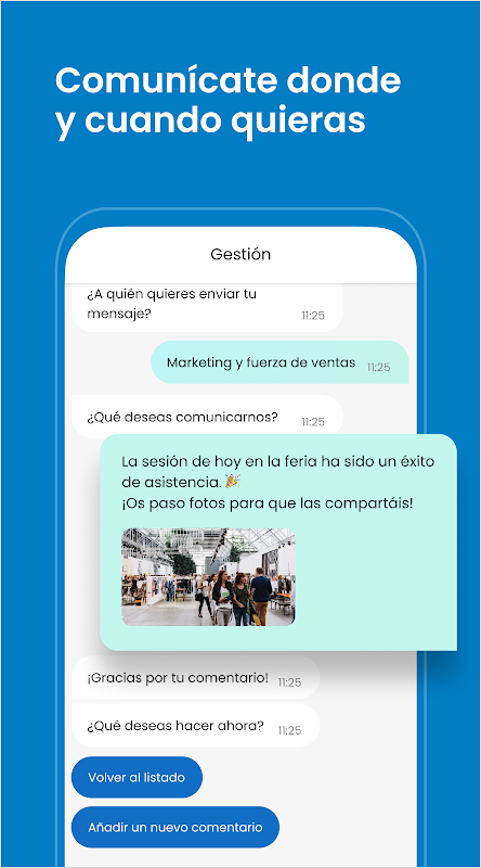 Que la comunicación no falte. Realiza solicitudes, consultas o sugerencias al vuelo a través de un amigable formato conversacional. ¿Quieres compartir una experiencia? Te lo ponemos muuuuy fácil.
