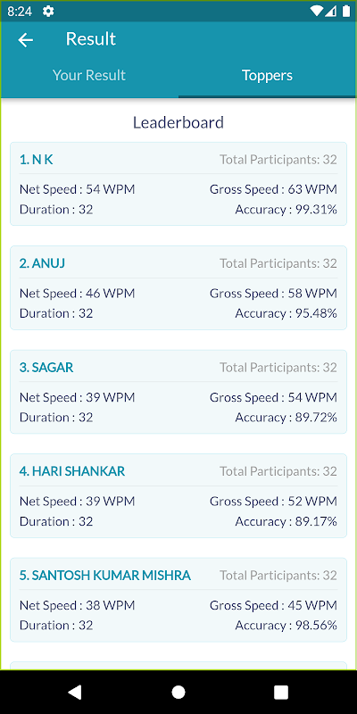 » Verifique su rango: Soni Typing Tutor le permitirá conocer su rango con sus compañeros. Puede verificar su velocidad de escritura y también verificar su rango con otros participantes.