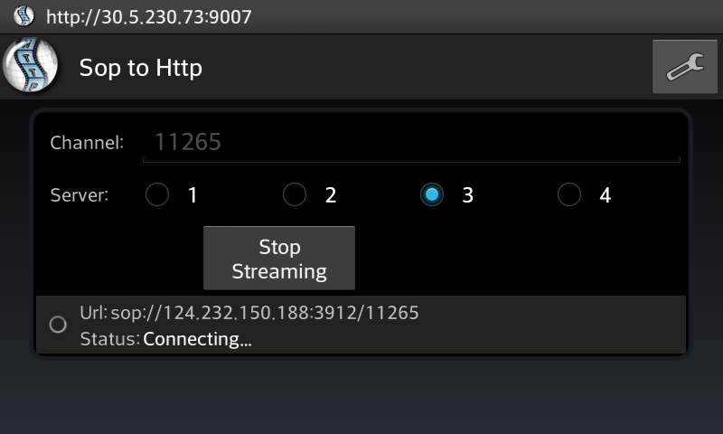 Sop to Http creará un stream local http:// que puedes reproducir con tu reproductor de vídeo favorito.