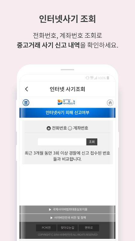 전화번호, 계좌번호를 조회하여 중고거래 사기 신고 내역 확인(경찰청 연동)