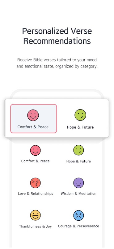 Con una interfaz clara y sin distracciones, SoulBible está diseñada para la devoción diaria, un momento de tranquilidad o un impulso espiritual rápido durante tu día ajetreado.
