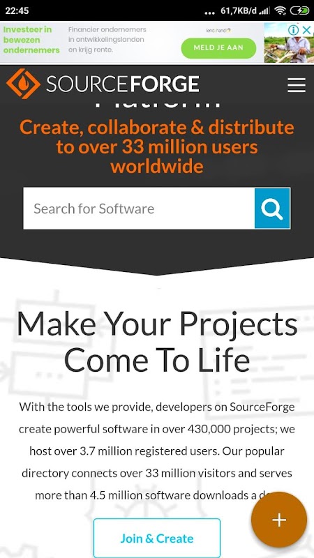 With the tools we provide, developers on SourceForge create powerful software in over 500,000 projects; we host millions of registered users. Our popular directory connects more than 33 million monthly users with all of these open source projects and serves more than 4 million downloads a day.