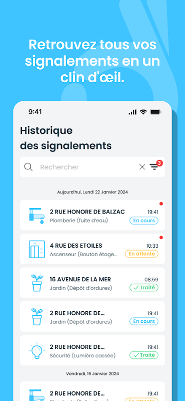 Quejas conectadas al sistema de información: Reporte todo tipo de incidentes que afecten a su propiedad, ya sean técnicos o administrativos, en tan solo unos clics. Gracias a la conexión con su ERP/CRM, realice un seguimiento del procesamiento en tiempo real y evite tener que volver a ingresar la información.