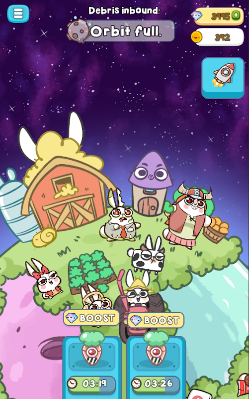 Discover a brand NEW planet, full of potential. Blast off into space and collect Space Carrots! Unlock the strangest items and new bunny friends to fill your world and create a magical home.