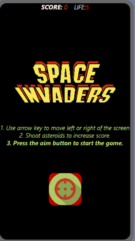 Esta es la aplicación de los invasores del espacio. ¿Quieres deshacerte de tu aburrimiento? ¡Definitivamente te encantará este juego! Esta aplicación comienza a funcionar cuando se hace clic en el botón de reproducción.