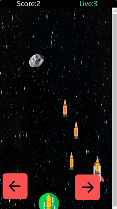 La aplicación Space Invaders es un juego relajante que replica asteroides que pueden ser destruidos por las balas que caen sobre un cohete.