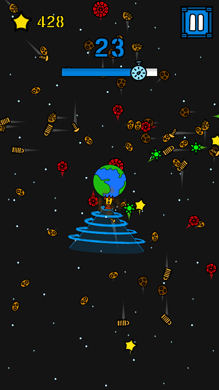 - Toca y mantén presionado para mover y absorber la basura espacial.