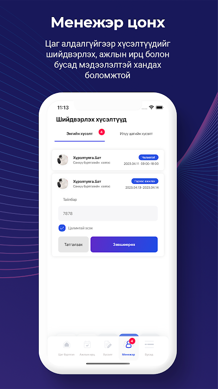 Хүсэлт – Ажилтны чөлөө, шийдвэрлэх