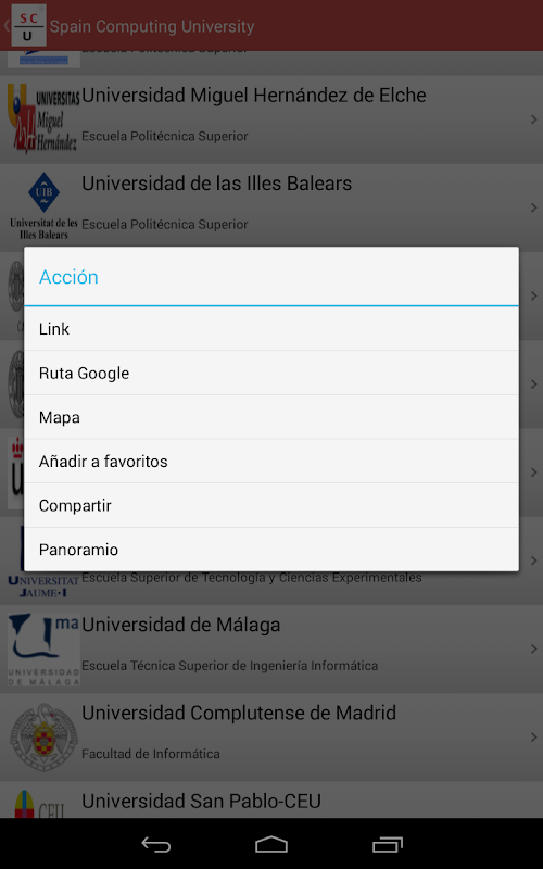-Sobre el detalle de cada universidad se puede acceder a su localización,descripción y enlace web