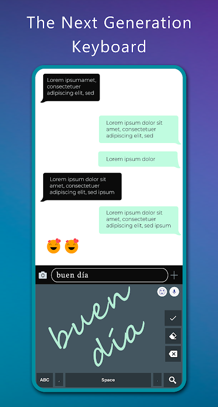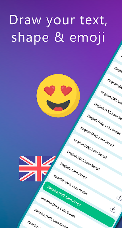 La aplicación de teclado de escritura a mano en español le ofrece una función para escribir usando dibujos. Los idiomas inglés y español se convierten de escritura a mano a texto real. La aplicación también convierte emojis y formas dibujados a mano en emojis y formas de teléfono. También puedes dibujar emojis y escribir usándolos.