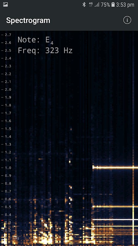 Esta aplicación utiliza una Transformada de Fourier rápida (FFT) para analizar el sonido recogido por el micrófono del dispositivo en tiempo real.