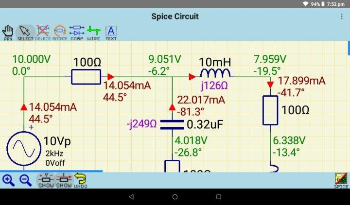 SpiceCircuit: es una aplicación de entrada de circuito gráfico completo con capacidad (actualmente limitada) de simulación de punto de operación de CC y CA de Spice.