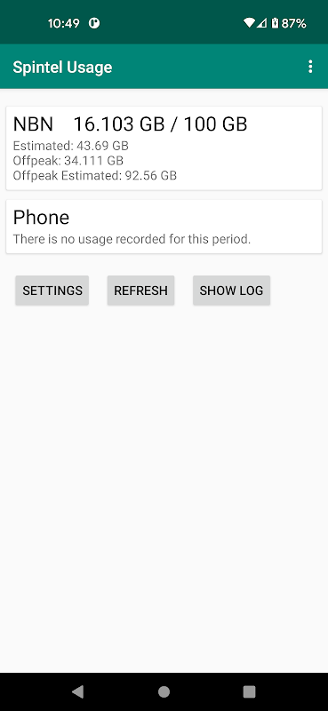 * Simple display of data usage and quota