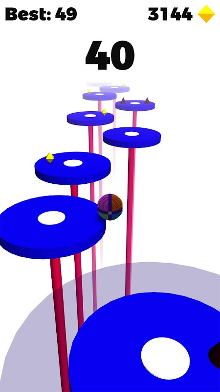 Dodge spikes, collect rubies and make insane perfect combos! Started from the bottom now we're here! Bounce off tiles and make as many hops as you can in this mind-blowing arcade action! Touch the screen and drag left or right to guide the ball from tile to tile. Don’t miss the path! Make insane combos and beat your friend's scores!