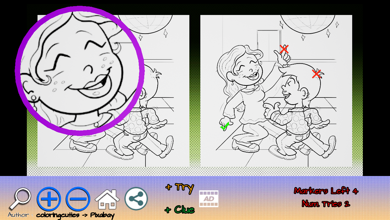 Puedes utilizar la lupa virtual para tener una mejor experiencia y encontrar antes las diferencias entre las imágenes.