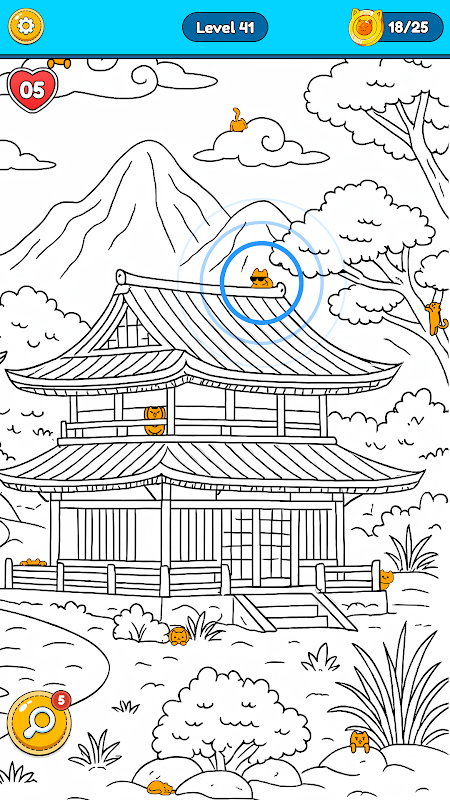 Cada nivel es un dibujo artístico lleno de gatos escurridizos esperando a ser descubiertos. Observa con atención, amplía la imagen y pon a prueba tu capacidad de observación en este relajante y divertido juego de gatitos.