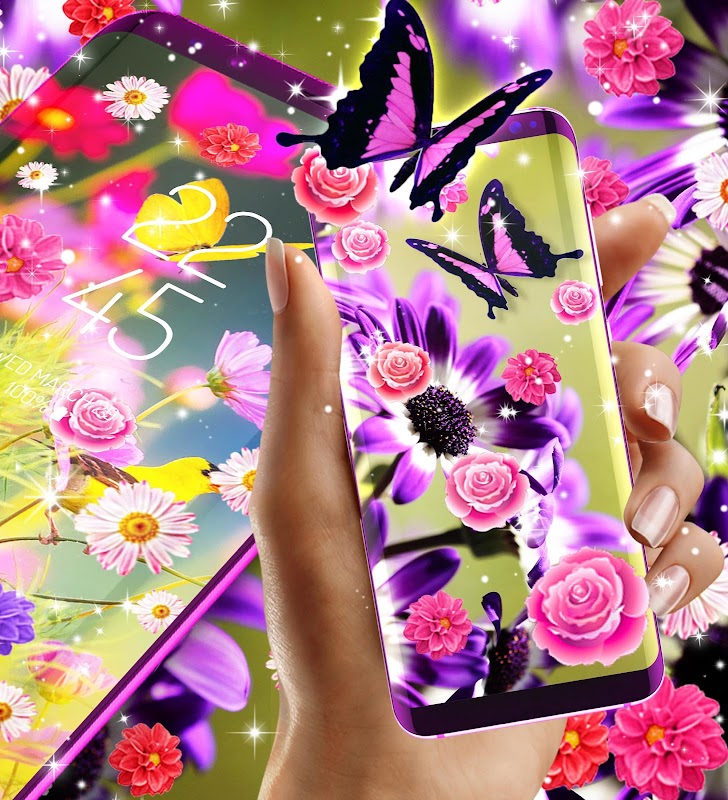 Estarás encantado con tantas flores en tu fondo. Flores incluidas en esta aplicación: rosas, rosas rojas, rosas rosadas, flor, margarita, gerberas, anturios, violetas y muchas otras.