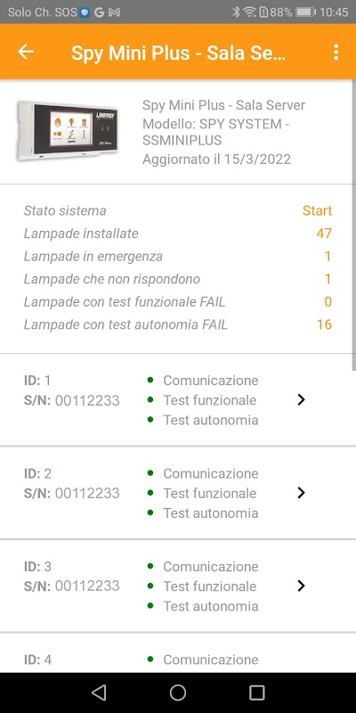 A través de la aplicación Spy Manager, es posible adquirir los dispositivos del sistema de emergencia que también se almacenarán automáticamente en la nube para la visualización remota del estado.