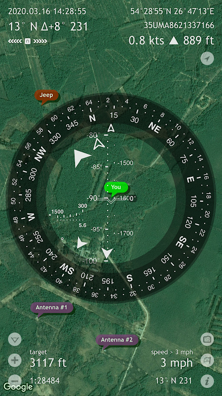 Encuentre y rastree su ubicación y obtenga datos GPS detallados: coordenadas en docenas de formatos, altitud, rumbo, velocidad actual, máxima y vertical, utilizando unidades imperiales, métricas, náuticas y topográficas.