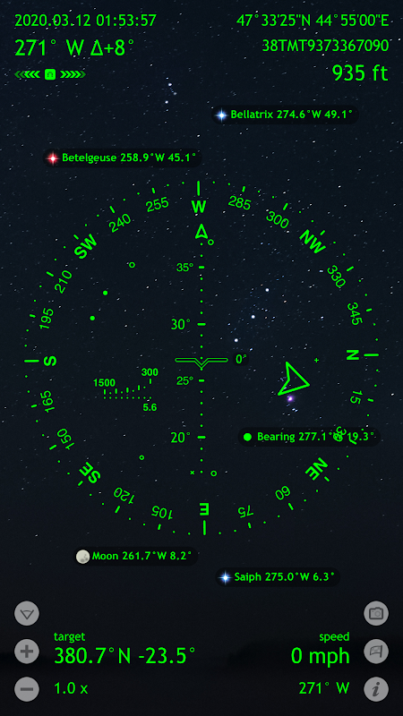 Realice un seguimiento de las posiciones de Polaris, el Sol y la Luna con una precisión de segundos de arco; utilícelas como referencia para calibrar la brújula para obtener la máxima precisión.