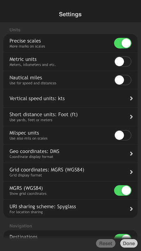 Las técnicas de mejora de la precisión, los modos especiales de la brújula y los métodos de calibración disponibles en Spyglass lo convierten en un instrumento real: la brújula digital más avanzada y precisa.