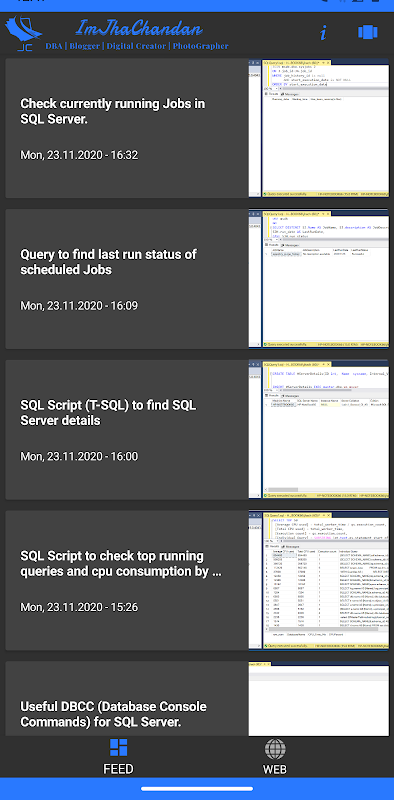 Esta aplicación lo ayudará a aprender consultas útiles/SQL, consejos para solucionar problemas y su solución, realizar actividades relacionadas con la base de datos, etc. y no olvide reflexionar con nosotros :)....