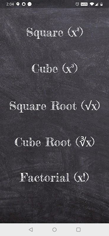La aplicación Square, Cube, Root & Factorial contiene,
