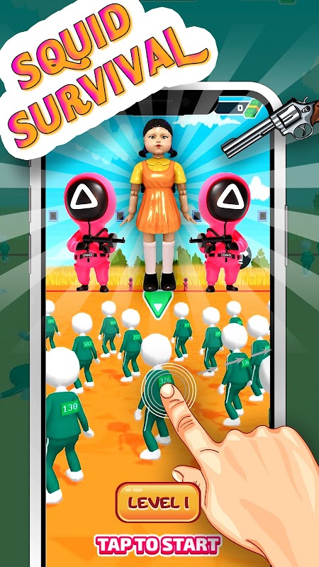 Squid Game is survival shooting games based on Red Light, Green Light. Begin your survival adventure with the unlimited levels and endless gameplay.