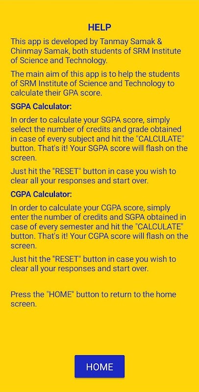 El objetivo principal de esta aplicación es ayudar a los estudiantes de todas las ramas del Instituto de Ciencia y Tecnología SRM a calcular su puntaje de GPA. Puede ser utilizado por otros estudiantes universitarios también, pero está destinado principalmente a los estudiantes del Instituto de Ciencia y Tecnología SRM.