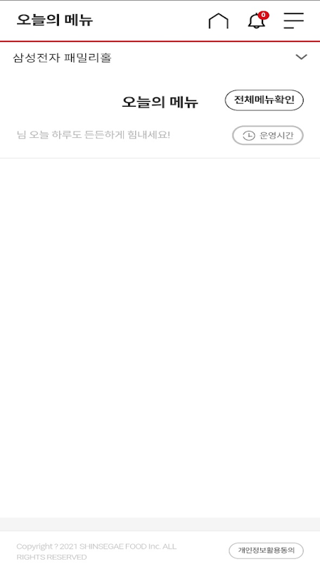 Este es un servicio de aplicación móvil que proporciona información de menús para establecimientos de catering operados por Shinsegae Food.