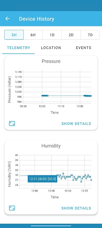 Los datos recopilados en el tablero se pueden consultar a través de gráficos y filtrar a través de intervalos de tiempo de hasta 7 días antes.