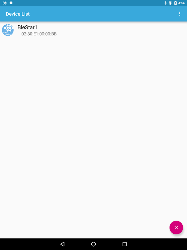Simplemente inicie la aplicación ST BLE StarNet, escanee la red y establezca una conexión Bluetooth con su STM32 Nucleo, que aparece con el nombre BLESTAR1, en la lista de dispositivos descubiertos.