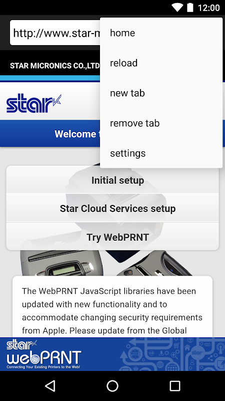 Before you update Star Webprint Browser, please ask your web application vendor if your web application supports latest Star WebPRNT Browser to make sure your web application works without any possible issue.