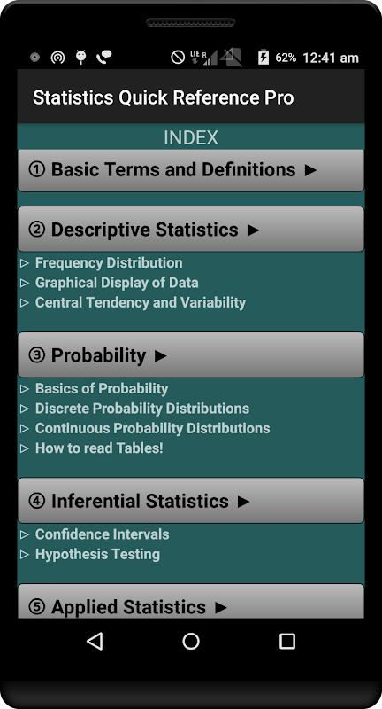 Statistics Quick Reference Pro fue diseñado por un instructor de estadística calificado. Se explicó detalladamente cada uno de los conceptos, seguido de un ejemplo para una mejor comprensión.