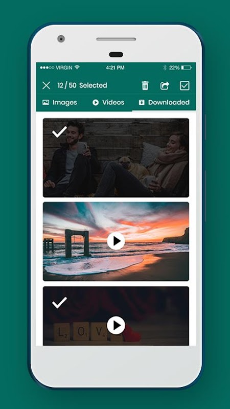 6. Vaya a la pestaña Guardado y todas las imágenes / videos guardados estarán disponibles. Selecciona imágenes / videos específicos y compártelo.