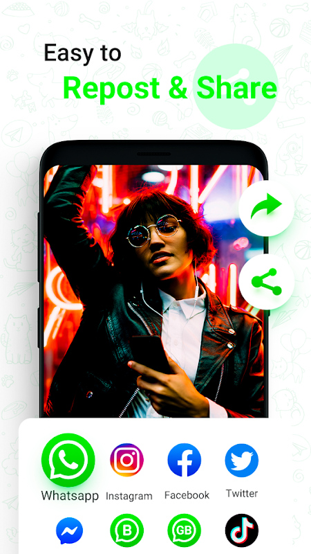 Descargador de estado para whatsapp. Descarga video de estado, imágenes de estatuas de amigos.