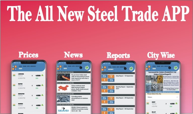 We use to track the Daily Steel Prices of Indian Market and Commodity like Ingot, Billet, HRC, CRC, Wire, TMT, Structure, Scrap, Pig Iron, Sponge Iron, Coal, Iron Ore, Metals (MCX) etc from the Indian Market and use to share the same Via our “Steel Trade” Mobile APP.