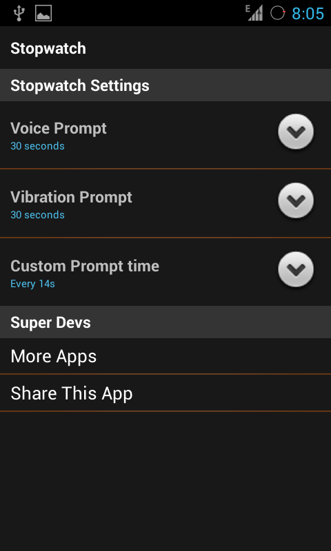- Esta aplicación cronómetro también hablará el número de segundos que pasaron que es configurable desde la configuración.