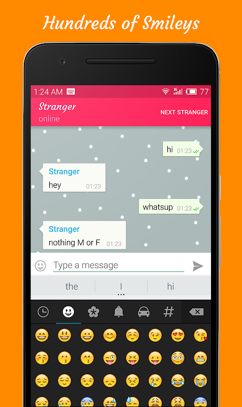 You don't need to create any login or account, no usernames, no profile pictures. Just start one on one chat with a single tap.