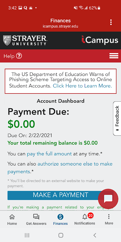 Strayer Mobile es el socio perfecto para la aplicación Blackboard que le permite completar sus tareas de discusión, ver conferencias y realizar cuestionarios desde su teléfono o tableta.