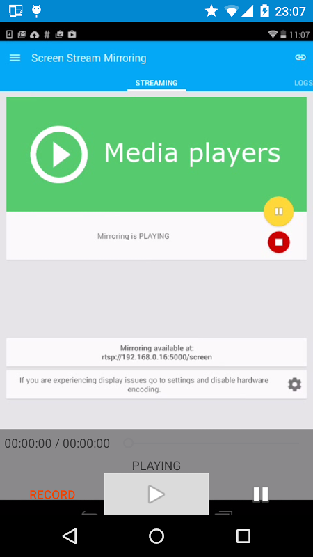 Reproductor de Android para Screen Stream Mirroring aplicación, reproducir y grabar vídeos en vivo